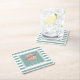 Sous-verres en papier blanc rayé de sarcelle pour les propriétaires de maison, de finca ou d'entreprise à Majorque ou pour les événements et les célébrations qui ont lieu à Majorque.