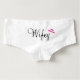 Sous-vêtements WIFEY pour mariée mariage. Ajoutez votre propre nom de Mme. Sous-vêtements pour femmes personnalisées avec texte, nom, monogramme, lettre initiale, citation drôle ou en disant personnalisés. Modèle de typographie de script élégant. Des culottes personnalisables pour les femmes mariées. Aussi disponible sous forme de mignonettes / g cordes et des briefs de boxer. Faites votre propre lingerie drôle pour la Saint Valentin romantique, Anniversaire, nuit mariage, bachelor ou bachelorette gag, Custom dames short glisser avec votre propre citation humoristique / dire.. Accessoire de vêtement amusant pour petite amie, future épouse, mariée à être, partenaire, collègue, ami, demoiselle d'honneur etc. Sous-vêtement mignon pour surprendre partenaire, petit ami ou mari. Amusant pour la fête de bachelorette, voyage de fin de semaine pour les filles, sortie pour les dames, anniversaire, poule, fiançailles etc. Disponible en couleurs cool tendance ; rouge rose noir blanc turquoise.