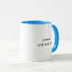 Soutenez l'Ukraine avec cette tasse de café bleu et blanc. Le texte en noir fait une déclaration en la maintenant simple. Zelensky serait fier. Design original Ken-Ray.