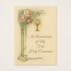 Personnalisez cette belle carte de souvenir de la Première Sainte Communion avec des roses roses, du calice et de l'hôte.