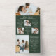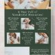 Souvenirs Année En Revue Photo Collage Carte De Vacances. Enregistrez le meilleur de votre année avec notre "Green Year In Review Trifold Cards". Police blanche en gras "Oh, What A Year" dans police de machine à écrire vintage sur un arrière - plan vert forêt. Ajoutez votre propre message pour le rendre vôtre. Revivez le plaisir de vos souvenirs préférés, une carte à la fois.