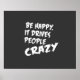Soyez Heureux, Ça Rend Les Gens Fous ! Drôle slogan pour votre affiche murale. Pour toute la gamme de produits qui utilisent le design similaire - et beaucoup d'autres modèles amusants et cool - veuillez aller à notre magasin : zazzle.com/TheCoffeeArt .
