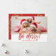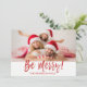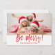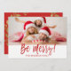 Soyez Joyeux Noël Carte photo de script Lettré à la main. La photo et le texte de ce script de brosse manuscrite peuvent être mis à jour et customisés avec votre photo et votre nom de famille. Cette carte affiche également le nom de famille et une feuille d'or au dos de la carte de Noël.