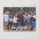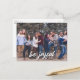 L'avant de cette carte postale présente votre photo préférée et votre message de voeux de vacances en script brosse. Au verso se trouve votre texte personnalisé et votre adresse de retour. Utilisez le formulaire modèle pour ajouter votre texte et votre photo personnalisés à l'avant et à l'arrière de la carte. Utilisez le bouton Customiser pour ajouter des lignes de texte supplémentaires ou pour modifier la police.