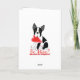 Carte de voeux lunatique et adorable de Saint-Valentin d'amour de Boston Terrier avec l'arrière - plan rouge de coeurs et le texte intérieur personnalisable.