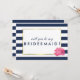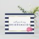 Demandez à vos meilleures filles de se tenir avec vous avec ces belles cartes. Le design est orné d'un arrière - plan à rayures marines audacieux, d'une bordure en faux or et d'une jolie pivoine rose aux aquarelles douces. Coordonnée avec nos suites d'invitation Navy Stripe & Pink Peony, fournitures de bureau, articles de maison et accessoires.