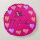 Nos jolies paroles Soyez miennes avec les Coeurs en rouge, rose et violet éparpillés autour de cet oreiller rond doux. Customisez de changer la couleur arrière - plan comme vous le souhaitez.