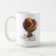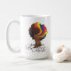 Cette tasse est du mon sien et du sien ligne. D'un côté de la tasse est l'image d'une femme d'Afro-américain. Elle a les cheveux naturels, avec des rayures d'arc-en-ciel. Les rayures d'arc-en-ciel représentent le drapeau de LGBT. On l'autre côté de la tasse est mon logo.