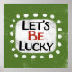 "Let's Be Lucky" est un design de texte mignon avec une forme d'accent blanc entourée de points blancs texturés.