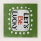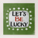 "Let's Be Lucky" est un design de texte mignon avec une forme d'accent blanc entourée de points blancs texturés.