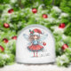 Celebrate the season with a festive and imaginative design featuring a playful Christmas fairy holding a red ornament. Dressed in a glittering red skirt, striped stockings, and a Santa hat adorned with holly, she brings joyful charm to your holiday message. Her delicate blue wings and curious expression add a touch of magic to the clean white background, where “MERRY CHRISTMAS” appears in a cheerful handwritten font. On the reverse side, a heartfelt greeting is included, perfect for sharing seasonal sparkle and delight. Ideal for those who love quirky elegance and fairy-inspired holiday cheer.