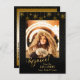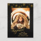 Elégant et festif faux or scintillent et flocons de neige sur arrière - plan noir avec calligraphie "Rejoice" texte graphique et trois lignes de texte modifiable avec un endroit pour votre photo de vacances. Motif de flocon de neige complémentaire sur le dos avec des champs de texte pour votre adresse et votre salutation.