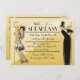 Wonderful 1920's Flapper and a gentelman in a tux and top hat invite you to a Great Gatsby, Roaring 20s or Speakeasy Party. Vintage illustrations and Art Deco accents. Faux gold.