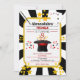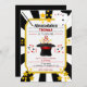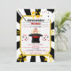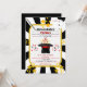 Abracadabra ! Voici une invitation d'anniversaire de magicien qui met en vedette le casquette magicien, baguette, et 4 As dans un arrière - plan de rayons noir et blanc. Parfait pour les invitations de fête d'anniversaire pour garçons ou filles.