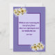Cette carte est conçue pour honorer la mémoire d'une personne à un service commémoratif ou à un enterrement. La photo est mise en place comme un modèle à remplacer par la photo de celle dont on se souvient. Trois bouquets de fleurs de maman araignée blanche sont exposés sur le devant sur un arrière - plan violet. "In Loving Memory" tourne autour de la photo. Le nom de la personne tourne autour du bas de la photo. L'année de naissance et l'année du décès se trouvent en bas de la carte. Cette carte peut être remise à un service commémoratif ou envoyée à ceux qui ne peuvent pas assister au service. Au dos se trouve la citation, "Tandis que nous pleurons la perte de notre amie, d'autres se réjouissent de la rencontrer derrière le voile," par John Taylor avec deux amas de maman d'araignée. Les mots sont conçus pour être personnalisés. Le design peut également être personnalisé avec votre propre découpe photo si vous le souhaitez. Si vous avez besoin d'aide pour personnaliser, s'il vous plaît contactez-moi.