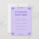 Cette carte d'inspiration tarot vous aidera à terminer vos soirées avec un état d'esprit positif. Il présente une élégante direction serif, ainsi qu'une liste des tâches nocturnes, y compris la méditation, la journalisation de gratitude, et se détendre en lisant un livre. Vous pouvez modifier ce texte pour l'adapter à votre routine. Le jeu de couleurs est un mignon violet girly, que vous pouvez également changer selon vos besoins. Pour créer un jeu de cartes inspirantes, modifiez une carte, ajoutez au panier, modifiez à nouveau, ajoutez au panier, répétez. Garde cette carte à côté de ton lit, donc c'est la dernière chose que tu vois la nuit. ・ ・ ・ Pour plus de papeterie spirituelle, visitez mon magasin Zazzle.com/In_The_Vortex