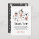 Préparez-vous à une célébration spottaculaire ! Ce design amusant comprend un squelette de danse dessiné à la main, deux fantômes espiègles et une chauve-souris, le tout entouré d'éléments d'Halloween éffrayants comme des rampes déplaisantes, des os, un crâne et des points noirs et oranges ludiques. Un carte de remerciements sur le thème de l'Halloween qui correspond à notre design "Spooktacular Halloween Party". Parcourez la collection liée sur cette page pour trouver les objets correspondants ou visitez notre magasin pour plus de dessins de fête d'anniversaire d'Halloween.