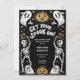 Get ready for a frightfully fun celebration! This playful Halloween invitation brings together spooky skeletons, cheerful ghosts, and glowing pumpkins in a design full of laughter and mischief. Perfect for kids’ parties or family gatherings that mix the magic of Halloween with a joyful twist.