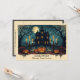 Invite your guests with this spooky house Halloween dinner party postcard, featuring a haunted mansion silhouette against a glowing full moon. The eerie scene, complete with bats and twisted trees, creates the perfect mood for your haunted celebration.