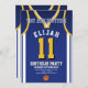 Célébrez votre journée spéciale avec cette Invitation anniversaire de Basketball Jersey, conçue pour les vrais fans de basket ! Doté d'un design jersey audacieux inspiré des couleurs emblématiques violet et or, cet invitation est parfait pour les enfants, les ados et les adultes qui aiment le jeu. Personnalisez-le facilement avec votre nom, âge, détails de la fête et même le numéro d'équipe en quelques clics seulement. Disponible en plusieurs tailles, imprimé sur papier de qualité supérieure avec une large gamme de finitions pour correspondre à votre style. Choisissez parmi différents types de papier, l'impression rapide et l'expédition rapide afin que vos invitations arrivent à temps. Que ce soit pour une fête sportive ou une fête de fans de Lakers, cet invitation est le moyen idéal pour exciter vos invités.