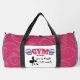 Sac de gym coloré et amusant avec une femme levant des poids tout en adorant son chat! Sous le titre de "Gym Bag" on peut lire : "Vous devez vous battre pour votre muscle". Disponible en petites et grandes tailles !