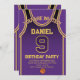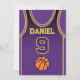 Célébrez votre journée spéciale avec cette Invitation anniversaire de Basketball Jersey, conçue pour les vrais fans de basket ! Doté d'un design jersey audacieux inspiré des couleurs emblématiques violet et or, cet invitation est parfait pour les enfants, les ados et les adultes qui aiment le jeu. Personnalisez-le facilement avec votre nom, âge, détails de la fête et même le numéro d'équipe en quelques clics seulement. Disponible en plusieurs tailles, imprimé sur papier de qualité supérieure avec une large gamme de finitions pour correspondre à votre style. Choisissez parmi différents types de papier, l'impression rapide et l'expédition rapide afin que vos invitations arrivent à temps. Que ce soit pour une fête sportive ou une fête de fans de Lakers, cet invitation est le moyen idéal pour exciter vos invités.