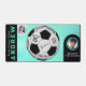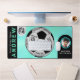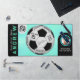This blue custom soccer ball desk mat features a fully customizable design with editable text on the soccer ball including name, number, and signature, customizable logo and logo text, customizable photo frame, multiple customizable text areas, and a bold speedy-style motion background, created as a milestone sport lover gift for students, athletes, coaches, teams, and soccer fans to celebrate birthdays, academic achievements, sports accomplishments, tournaments, team progress, season milestones, and important sports-related celebrations.