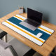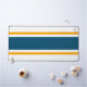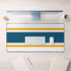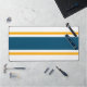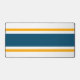 Ce design sportif présente des rayures jaunes dorées qui soulignent une large bande centre bleu foncé et vibrante de l'océan contre un arrière - plan blanc.