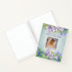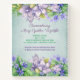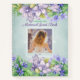 Belle illustration florale dans les tons printemps lilas, lavande et violet. Fait une carte de service mémorial personnalisée. Remplacez l'exemple de photo portrait et de texte par le vôtre. Parfait pour commémorer un défunt qui aimait les fleurs, le jardinage, la nature.