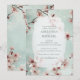 A delightful wedding invitation featuring a vibrant spring pink floral design set against a sophisticated teal background. Perfect for couples seeking a classic yet modern touch for their special day.