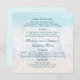 Beach wedding reception menu. Square with rounded corners and dark teal blue text to customize in sections. The names of the bride and groom are in the center along with "wedding menu" text. List hors d'oeuvres, salad / starters, entrées, and dessert beneath each heading. The sample wording in each section has three lines, or use only two. Blue ocean water, white foam, and beach sand is the background. Also choose the round shape as long as wording is not near the edges.