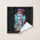 Serviette sertie avec l'illustration d'un squelette humoristique. Portant un chapeau haut, tenant un verre. Il a un grand sourire sur le visage. Amusement sympa et éffrayant pour Halloween.