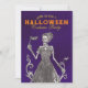 squelette éffrayante femme victorienne halloween invitation partie présente une illustration de style vintage sur un arrière - plan de texture violet foncé. Customisez avec vos coordonnées au verso de la carte à l'invitation de vos invités à votre événement. Veuillez consulter la collection d'invitations de fêtes d'Halloween pour plus de designs.