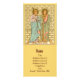 Customisez le devant de votre église, de votre école ou de votre organisation et ajoutez votre texte à l'arrière vierge de cette main versatile. + Sauf pour leur apôtre, il y a peu dans les Évangiles de liens entre saint Philippe et saint Jacques le Moins. La raison pour laquelle ces Apôtres célèbrent une fête commune est circonstancielle : Leurs restes terrestres, ou du moins des parties d'entre eux, sont conservés ensemble dans une église de Rome, en Italie, qui leur est dédiée le 1er mai 560. + Depuis, l'église et la fête ont connu des changements considérables. Aujourd'hui, l'église, basilique mineure, est dédiée à *tous* des Apôtres et est connue comme l'église des Douze Apôtres saints (Basilique santi apostoli en italien). Et, sous l'actuel calendrier général romain, la fête a lieu le 3 mai, date ayant été changée en 1955 lorsque le Pape Pie XII a institué la fête de saint Joseph le travailleur, un mémorial facultatif qui coïncide avec la Journée du Mai (Journée internationale des travailleurs). + Source image (RLS 15) : Image ancienne en chromolithographie avec des accents dorés de SS. Philip et James (les Moins) de Red Letter Saints : Être une série de biographies de ces Saints pour lesquels des Collectes, épîtres et Evangiles appropriés sont désignés dans le Livre de la Prière Commune. Imprimé par E. Kaufmann, Lahr, Baden, Allemagne, pour la Société pour la Promotion de la Connaissance Chrétienne / S.P.C.K. (Londres, 1911), p. 35. Extrait de la collection privée du concepteur d'éphémères religieux. + Fête : Mai 3 + N'hésitez pas à changer la couleur arrière - plan. La palette "Red Letter Saints" est la même pour les dix-neuf images du livre avec des variations mineures. Il se compose des couleurs suivantes (avec codes hexadécimaux) : crème (#FEEFBE), jaune moyen (#F1D168), jaune-vert moyen (#999954), bleu moyen (#ACCBB1), bleu foncé moyen (#8CAC98), mauve (#E6BEA5), rose saumon (#FAAE8B), pêche (#F5B) 94), orange brunâtre (#E48B11), beige (#E8C6A1), or foncé (#87722E) et brun-rouge foncé (#460000). Choisissez comme vous voulez! + Le texte est en rouge foncé (#460000) qui correspond aux contours des figures.