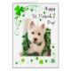 Sur le devant de cette carte se trouve un West Highland Terrier prêt pour la St. Patrick's Day. Il est emballé dans une guirlande et porte une cravate. Le Westie est également entouré de shamrocks. Les amateurs de Westies adoreraient cette carte. Je crois que tout le monde apprécierait cette carte. A l'intérieur de la carte, il y a plus de shamrocks. Il y a une grande bénédiction sur les pétales sur un couvercle de 3 feuilles. N'hésitez pas à changer le dicton en tout ce qui correspond à vos besoins. Je vous remercie de prendre le temps de vérifier mes produits. Gingcard designs par Ginger Brown.