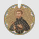Saint Pierre Claver (1580-1654) était un prêtre et missionnaire jésuite espagnol. En 1610, Saint-Pierre se porta volontaire pour servir dans le Nouveau Royaume de Grenade dans les Amériques, qui englobe aujourd'hui le Panama, la Colombie et le Venezuela. Il y a travaillé pendant quarante ans à la gestion d'esclaves à leur arrivée à Cartagena, une plaque tournante du commerce transatlantique des esclaves, et dans les plantations de la campagne voisine. Ses efforts inlassables non seulement pour convertir les esclaves au catholicisme en prêchant le Christ crucifié, mais pour améliorer leurs souffrances lui ont valu l'épithète "Esclave des Africains". + Ici, Saint-Pierre est montré vêtu d'une robe jésuite, une chaussette noire et une cape collée. Il tient une simple croix de bois brun et une couronne d'épines, symboles de Jésus comme "un homme de tristesse et familier avec le chagrin" (Ésaïe 53:3). L'image est enfermée dans un cadre intérieur qui rappelle une fenêtre gothique à huit pétales de rose (ou de roue); les coins du cadre extérieur simple et carré sont remplis de charbons héraldiques. + Saint Pierre Claver meurt le 8 septembre 1654 de causes naturelles après une longue maladie. Il est le patron de la justice inter-raciale, des Afro-Américains, des missions africaines, des esclaves et de la République de Colombie. + Fête : 9 septembre + Crédit image (BK 058) : Image antique de S[Saint] Petrus [Peter] Claver, S.J., publiée initialement dans la chromolithographie par B. Kühlen, Mönchengladbach, Allemagne, série jésuite non numérotée, fin 19ème siècle, de la collection privée du designer de l'épopée religieuse.