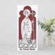 Le 16 novembre 1538, par la Proclamation royale, Henri VIII proscrivit saint Thomas Becket (1120-1170). L’interdiction signifie que le sanctuaire de Becket dans la cathédrale de Canterbury a été démantelé et détruit ; ses os ont été brûlés et ses cendres dispersées ; ses images et ses inscriptions ont été défigurées ; et toutes les commémorations liturgiques de lui ont été interdites. Les églises qui avaient été nommées en son honneur ont été réconsacrées à son homonyme saint Thomas l'apôtre. + Bien sûr, la proscription de Becket faisait partie du programme plus général du Roi connu sous le nom de Dissolution des Monastères. Mais étant donné la singularité de Becket et la véhémence de sa proscription, les historiens ne peuvent s’empêcher de spéculer qu’il y avait aussi une rancune plus personnelle contre le prélat à l’oeuvre : le coque de Becket était trop proche pour se consoler des événements récents. + En 1535, Henri VIII avait fait martyr St Thomas More par sa décapitation. Outre la coïncidence de leurs noms, les deux Henrys (II et VIII) et les deux Thomases (Becket et More) avaient beaucoup en commun : les deux Thomases avaient été amis avec leurs monarques respectifs. Tous deux avaient été Chanceliers d'Angleterre. Tous deux avaient défendu l'Eglise sur l'Etat. Tous deux étaient considérés comme des traîtres à la Couronne. Et les deux Henrys se sentaient trahis sur un plan profondément personnel. Ironiquement, aujourd'hui, les deux Thomases sont non seulement vénérées comme saints dans l'Église catholique romaine, mais aussi dans la Communion anglicane. + Il n'y a aucune représentation de Becket de sa vie. Tous les portraits sont posthumes et sont soit dérivés d'un original perdu ou imaginaire. Néanmoins, l'iconographie des premières oeuvres est remarquablement cohérente entre les quelques oeuvres monumentales restantes en Angleterre et les peintures et sculptures continentales. Dans ceux-ci, Becket est habituellement représenté dans son premier : grand, mince, rasé, garni pour la messe dans le chasteté et le pallium, et portant un lectionnaire ou un livre de l'Évangile. Parfois, il porte sa mitre ; parfois, il porte sa croix archiépiscopale. On ne fait aucune référence à son martyr. C'était inutile. Tout le monde connaissait l'histoire. + L'image ici est l'une des rares à avoir survécu à la purge en Angleterre. Il s'agit d'une gravure d'une peinture qui était autrefois recouverte de blanchisserie pour la préserver. Datant du XVIe siècle, il représente une étape supplémentaire dans le développement de l’iconographie du saint. Ici, saint Thomas habillé de toutes les canoniques tient sa croix archiépiscopale dans sa main gauche et une épée inversée, l'instrument de son martyre, à sa droite. Hélas, l'épée n'est plus à voir. Pourtant, la simple présence d'une épée dans une oeuvre d'art n'est guère individuatrice. Dans une étude iconographique en deux volumes d'environ 1000 saints, une épée est associée à plus de 15% ou 150 d'entre eux ! Parmi ces 150 - qui comprennent les femmes vierges chrétiennes primitives et les saints soldats masculins - environ 35 sont évêques ou archevêques. Parmi ceux-ci, St. Thomas finirait par recevoir un motif tout seul : une épée perçant sa tête miteuse d'un côté à l'autre (Voir P 005). + Fête : 29 décembre + Crédit image (M 033) : Gravure ancienne de Francis Joseph Baigent en 1853 d'une peinture de St. Thomas Becket découverte à l'église de Charité Stoke, Hampshire Angleterre, en 1845, publié à l'origine dans le Journal of the British Archaeological Association, vol. X (1855), plaque 6, p. 74. Le tableau est sur le devant gauche de la Tombe murale de John Waller, Esq., c. 1525. Nous avons donné un aperçu beaucoup plus large à l'arc de la feuille de trèfle.