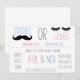 Invitation vos amis et votre famille à votre sexe révèlent la fête avec cette invitation thématique "Staches ou coups de fouet". Cette simple invitation avec un plaisir pour vos invités pour votre révélation!