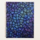 This beautiful planner features a close-up of an abstract mosaic pattern in shades of blue and purple, featuring irregular black outlines creating a stained glass effect with textured details. Finished in a mixed media art print.