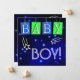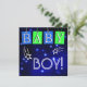 Annoncez l'arrivée de votre nouvelle petite étoile dans le monde avec ces annonces d'étoiles mignonnes avec des étoiles cool qui tournent sur un ciel bleu nuit. Chaque lettre du mot "Baby" est accrochée à une étiquette bleue ou verte en blanc qui ajoute à cette faire-part unique. Chambre sur le dos pour toutes vos informations personnalisées sur votre bébé sur le même arrière - plan étoilé.