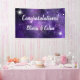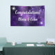 Ajoutez cette étoile - Bannière Mariage à vos accessoires de réception de mariage. Conçu dans des tons clairs et sombres d'étoiles violettes et blanches scintillantes, ce grand bandeau peut être personnalisé avec votre texte préféré en utilisant notre modèle facile. Assurez-vous de voir les pièces correspondantes dans cette Star Light - Collection Faire-part de mariage. Bon appétit !