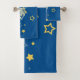 Le set de serviettes montre une silhouette Star Skater en bleu et jaune. Pour toute question sur la personnalisation, veuillez contacter info@KBMD3signs.com
