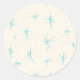 Ce motif de Stickers Rond Space Age Turquoise Starbursts présente des starbursts bleus sur un arrière - plan crémeux aux taches dorées. Inspiré d'un classique motif de plats modernes du milieu du siècle, ce design dégage une atmosphère vintage authentique. La bonté kitschy rétro vous fera sentir comme si vous étiez tombé sur un trésor du marché aux puces. Ce motif sera également à la maison dans un appartement de New York City penthouse ou une maison atomique Palm Springs. Laissez ce motif vintage minimaliste vous inspirer !