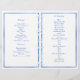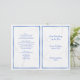 Programme plié mariage plage bleue. Texte bleu, bordures bleues sur chacune des 4 pages et un arrière - plan d'étoiles de mer en font un programme unique pour votre cérémonie de mariage d'été ou de plage. Utilisez les modèles de texte pour ajouter des informations sur la cérémonie de mariage à quatre zones, avant et arrière. ***Ne changez pas le type de papier car le papier plus lourd est difficile à plier.