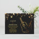 Ce faire-part de mariage de célébration pour les mélomanes présente des étoiles dorées fantaisistes et des guitares acoustiques contre un arrière - plan noir. Festif et amusant, comme un concert de nuit ! Parfait pour les musiciens ou les mélomanes. Couleurs : Noir et or.