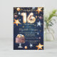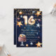 Un Sweet 16 moderne, chic et glamour avec des étoiles dorées, et gâteau sur arrière - plan bleu marine.