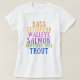 State of Michigan fish theme t-shirt. Cute rainbow text displaying popular fish of Michigan. A wonderful gift for the fisherwoman in your life! A great tee shirt for women who fish. A thoughtful gift for any Michigan lover in your family or friend group.