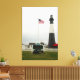 Photographie du phare Tybee (situé sur l'île Tybee à l'extérieur de Savannah, Géorgie) avec panneau de la station de phare Tybee Island et drapeau américain sur toile imprimée