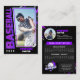 Créez une carte de baseball unique et personnalisée pour célébrer votre joueur préféré ! Ce design moderne présente une palette de couleurs noir & violet, un cadre photo saisissant et un espace pour toutes les stats importantes.