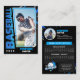 Créez une carte de baseball unique et personnalisée pour célébrer votre joueur préféré ! Ce design moderne présente une palette de couleurs noir et bleu, un cadre photo saisissant et un espace pour toutes les stats importantes.